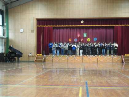 送る会直前のリハーサルの様子です。美しいリコーダーの音色が静かな体育館に響いています。