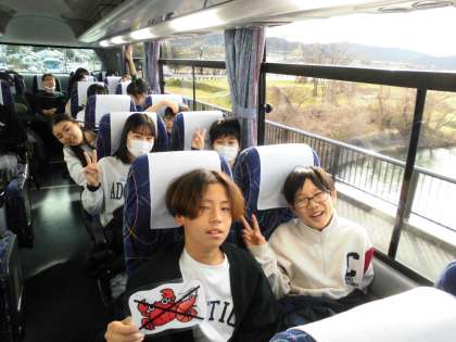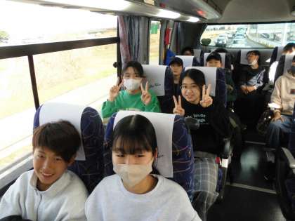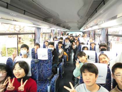 楽しみにしていた卒業遠足!心配だったお天気も何とかなりそうですね。よかったね。バスの中は賑やかです!