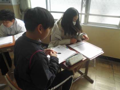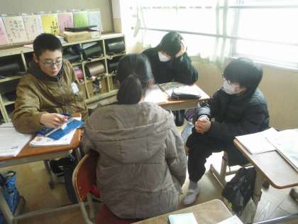 家庭科の学習では学んだことを活かして地域に何ができるのか考え、グループで交流しました。