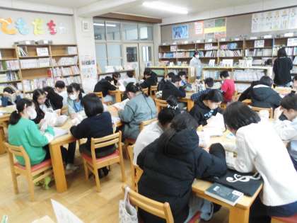 今日が学校の本を借りることができる最後の日です。一年間、たくさん本を読みましたね。これからもたくさん本を読んでくださいね。
