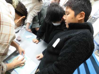 いよいよ紙をすいていきます。丁寧に、慎重に、頑張って作ってね。