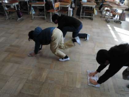 今日も熱心に掃除をしています。たくさん学んだ教室を丁寧に掃除しています。ありがとう!