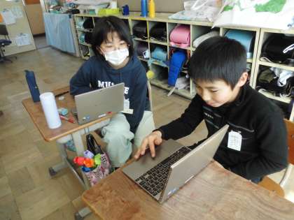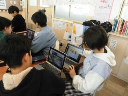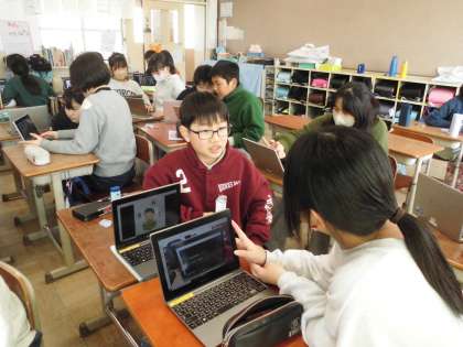 中学校で頑張りたいことなどを紹介し合う様子を録画し合いました。
