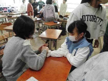 友だちの強さに驚き、いつの間にかお互いに「やろう!」「やろう!」とあちこちで対戦を楽しんでいました。