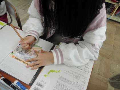いよいよ6年生の学習のスタートです。資料からわかることや気付いたことを熱心にノートに書き込んでいます。