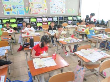 給食のやり方を少しずつ覚えてきました。