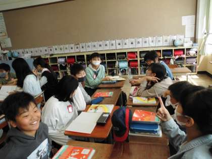 「つないで、つないで、一つのお話」の学習です。グループでお話を作っていきます。うまく作れるかな?