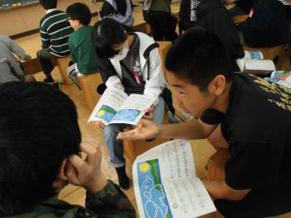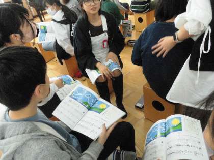 「翼をください」をどのように歌えばよいのかを話し合いました。楽譜の記号や音符に注目しながら意見を伝え合っていました。