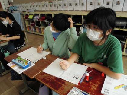 「対称な図形」の学習です。ぴったり重なる図形について調べました。