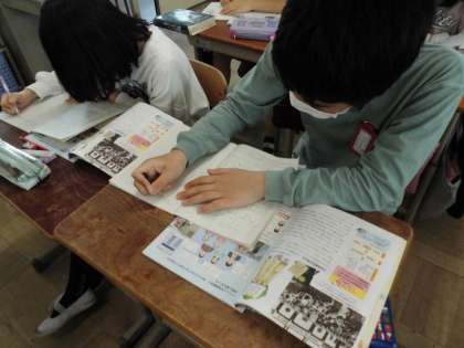 「私たちのくらしと日本国憲法」の学習です。日本国憲法について知っていることについて話し合い、教科書を使ってさらに調べを進めていきました。
