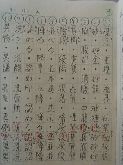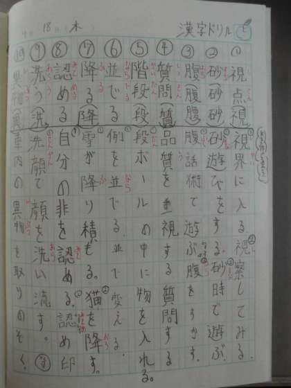 漢字学習ノートです。どうすれば、ばっちり覚えられるのか考えて取り組んでいますね。いいね!
