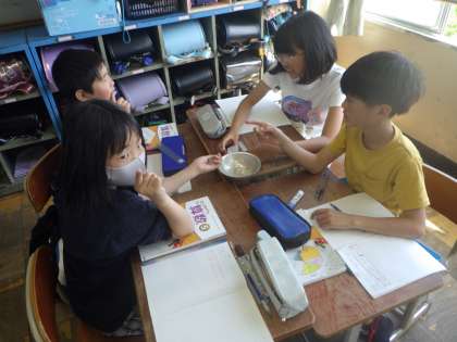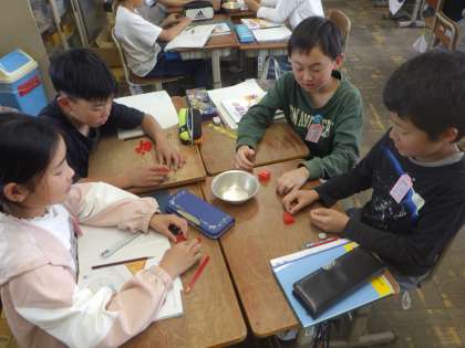 一辺が1cmの立方体を重ねて、直方体のかさの表し方を調べました。