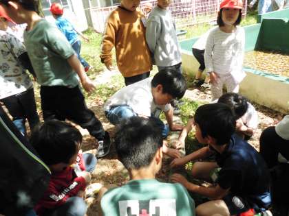 中庭で遊べるときは、とてもうれしそうです。