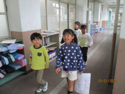 1年生に優しく声を掛けて教えている姿を見て、立派に成長したなぁと感心しました。終わった後にどうだった?と聞くと、「めっちゃ楽しかった!」「また、教えてあげたいな。」と嬉しそうに話していました。2年生!これからも1年生をよろしくね。
