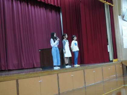 6年生の児童会本部役員の人たちが生活目標、人権目標、児童会目標を全校に伝えてくれました。