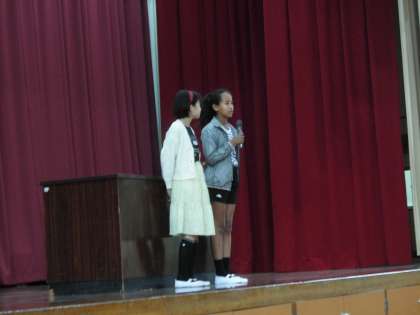 児童会目標や人権目標、生活目標などを全校児童に伝えました。緊張しながらも堂々と発表することができました。さすがです!