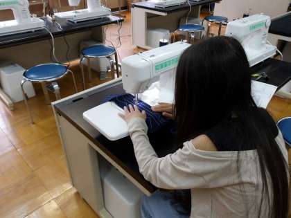 家庭科でナップサックを制作しています。ミシンを安全に使うことができました。素敵なナップサックが完成するといいですね。