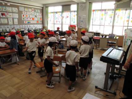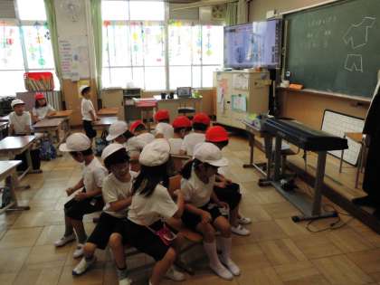 6つのいすで 赤白に分かれて、椅子取りゲームをしました。