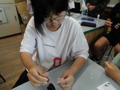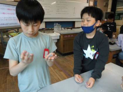 唾液によるデンプンの変化を調べます。友達と協力しながら取り組んでいきました。