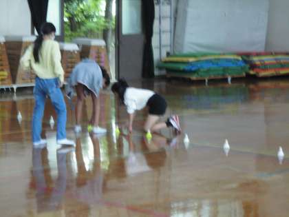 児童集会が始まる前に体育館の準備をしています。ありがとう!