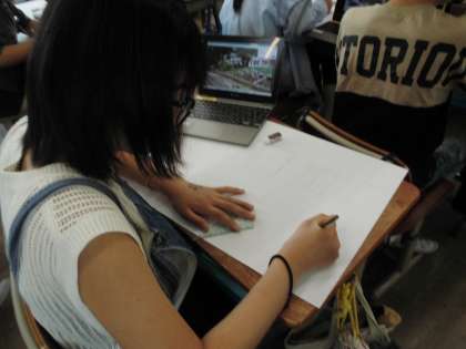 「お気に入りの風景」をかいています。集中して取り組んでいますね。