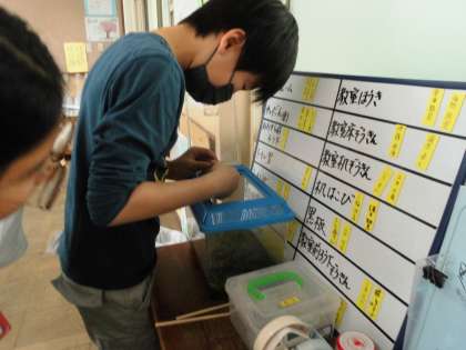 教室の生き物、元気かな?「ごはんだよ〜!」