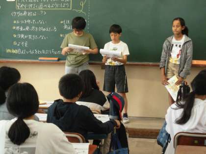 遊具でのけがの原因について話し合いました。多くのけがの原因が自分にあることから、どのようなことにきをつければよいのかをグループで話し合い、発表しました。