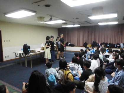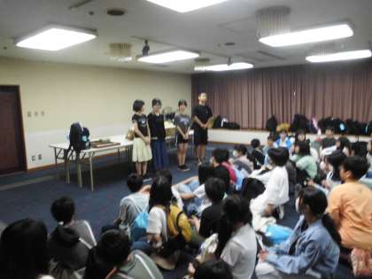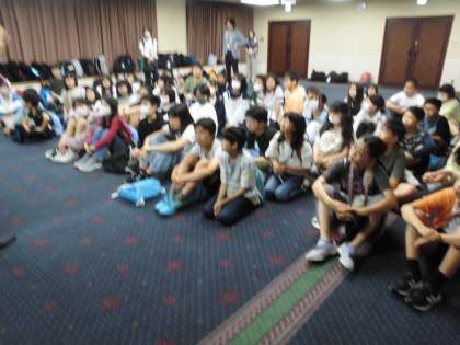 ホテルに到着!入館式をしました。疲れも見せず、しっかり挨拶をしてくれました。聞く姿勢も花丸です!