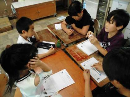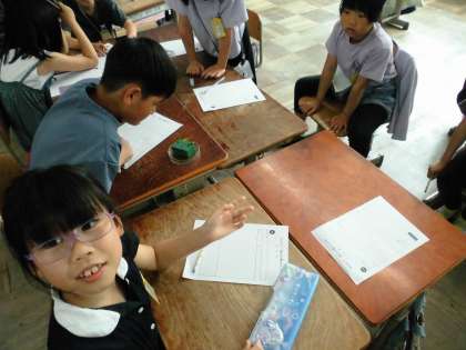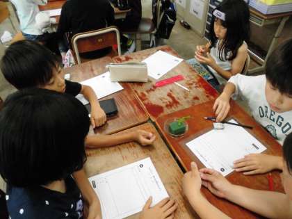あおむしの観察でした。「全然動かないよ。」「葉っぱ食べてる!」など動きをじっくり観察していました。