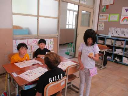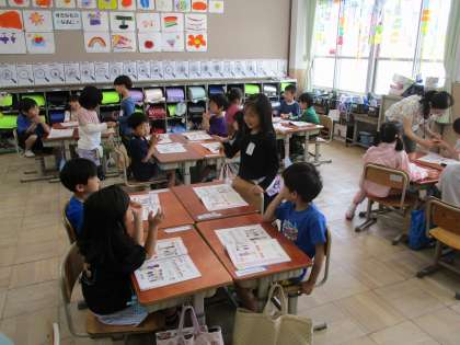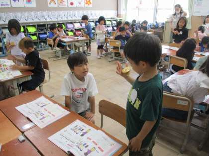 カスタネットを使いリズムをとりました。