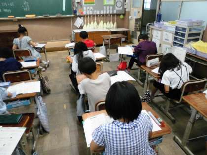 チャイムが鳴り終わってもまだ終わらなかったひっ算の練習問題。「チャイム鳴ったし終わろうか。」と言ったら、「待って〜あと一問だけ!」「時間がほしい〜。」「最後までやりたい!」とやる気いっぱいのみんなでした。少し延長授業になりましたが、よく頑張りました。