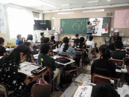 6年生初めての書写です。先生とめあてを確かめて!さぁ、いい字を書こう!頑張ってね。