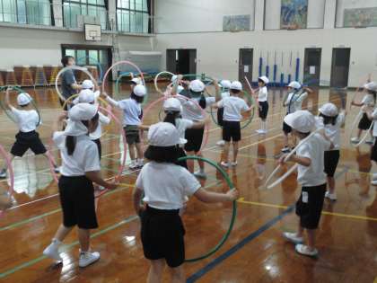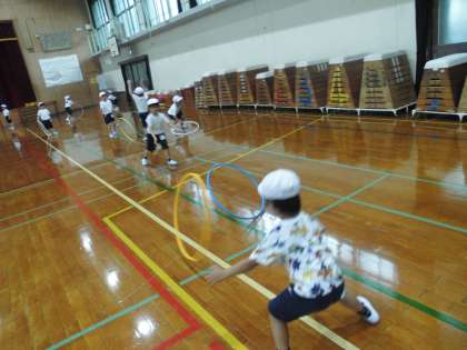 フラフープを使って、遊びました。どの子もとても楽しんでいましたよ。