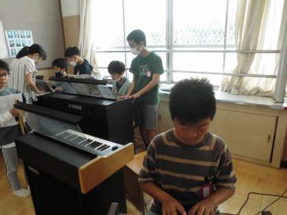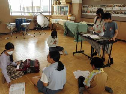 ラバースコンチェルトの合奏の練習をグループでしています。頑張ってね。