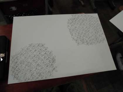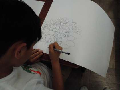 6月の絵をかきはじめました。6月と言えば・・・あじさい!校内にもきれいなあじさいが咲いていますね。