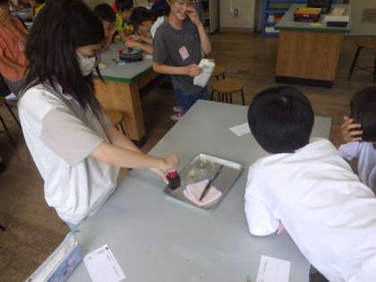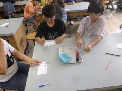 今日は発芽前の種子と発芽後の子葉にヨウ素液をかけて