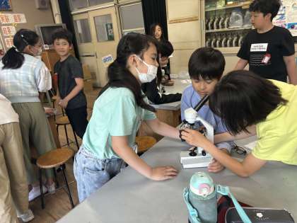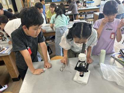 理科では引き続き植物の体のつくりにについて学習しています。今回は植物の葉っぱの仕組みを調べたり、気孔を観察したりしました。顕微鏡の使い方もばっちりでした。