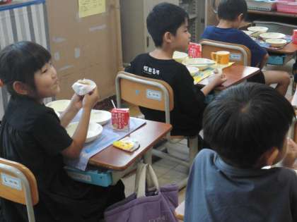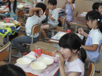 おそるおそる口にした子ども達。「おいしーい。」優しい甘い味がお口に広がります。
