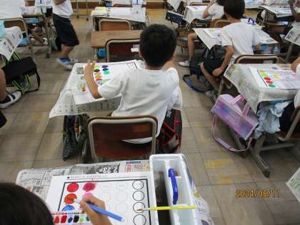 円の中に,色をつけていきました。「また、絵の具をしたいな。」という声が聞かれました。
