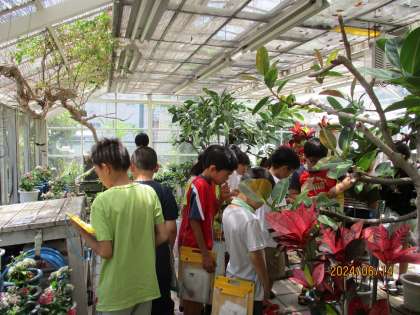 チョウの観察コーナーでは、温室で育てている3種類の沖縄の蝶を観察しました。幼虫〜成虫のいろいろな姿を見られました。