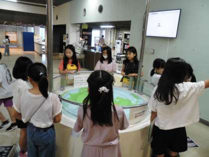 振り子のコーナーでは,スタートボタンを押すと地面が回りだしました。