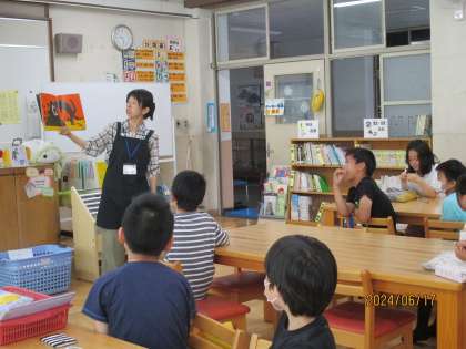 図書館でいろいろな本を読みました。久しぶりの図書館です。エアコンの調子が悪く、少し蒸し暑かったですが、いろいろな本を読んだり、読み聞かせをしてもらったりして楽しみました。自主学習に活用したり、お家に持ち帰ってゆっくり読んだりしたいという子もいました。