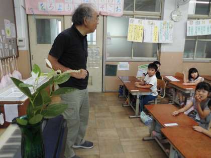 ハンゲショウの不思議や水無月のお菓子の由来などを興味深そうに聞いていました。