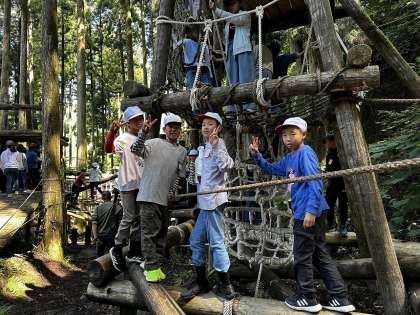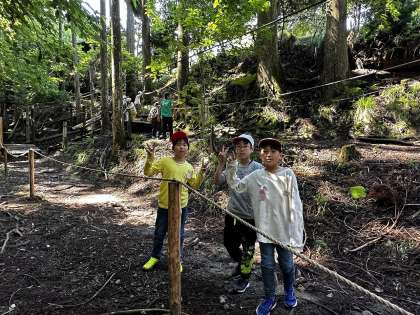朝からアスレチックを楽しんでいます。