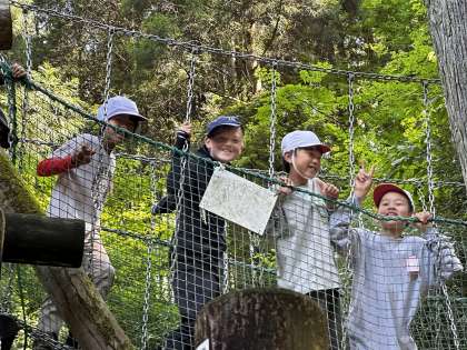 朝からアスレチックを楽しんでいます。