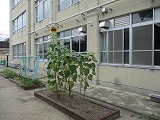 夏の間に成長した、サツマイモ(2年) ひまわり(3年)