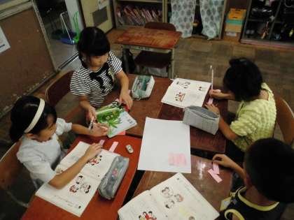 「こんな係がクラスにほしい」という単元で、班ごとにほしい係とその理由や目的、仕事内容について話し合いました。考えがたくさん広がりました。
