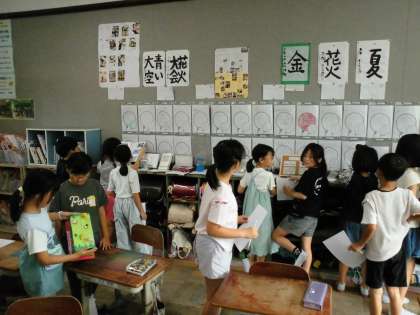 夏休みの自由研究を鑑賞しました。友達の力作に興味津々。よい刺激を受けました。