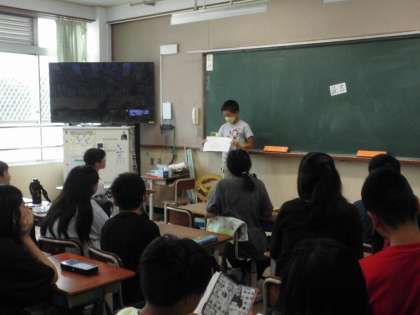 給食委員会からのお知らせを伝えています。ご苦労様!
