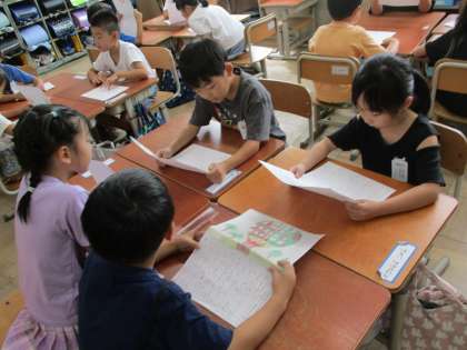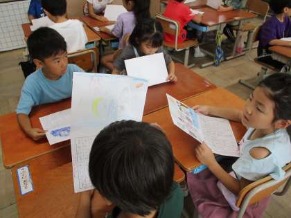 夏休みに書いてきた絵日記を班になって発表しました。